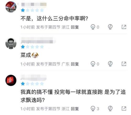 本輪廣廈以94比109不敵深圳的比賽,在小外援塔克狀態(tài)非常一般(10中5,僅得到18分)、胡金秋也未能扛起輸出重擔的情況下,趙巖昊也繼續(xù)掉鏈子,打了16分多鐘的他,9次出手僅命中3球,三分線外5中1,僅得到7分,而他每次投完一球直接就跑,也引起了球迷的熱議:“真搞不懂投完每一球就直接跑,是為了追求飄逸嗎?”