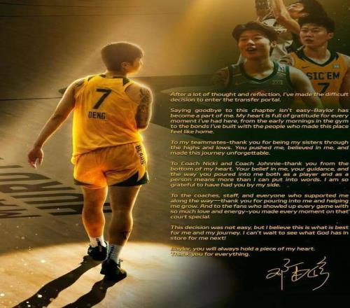 北京時(shí)間4月3日消息,中國女籃希望之星鄧雨婷于4月3日通過社交媒體正式宣布進(jìn)入NCAA轉(zhuǎn)校大名單(Transfer Portal),結(jié)束在貝勒大學(xué)的籃球生涯,引發(fā)國內(nèi)籃壇廣泛關(guān)注。這位22歲的中國女籃潛力新星,是首位以常規(guī)輪換身份隨隊(duì)闖入NCAA“瘋狂三月”第二輪的中國球員,其動向牽動著中國女籃未來鋒線建設(shè)的期待。