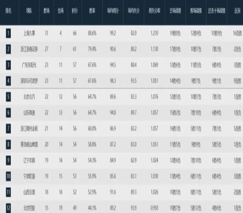 目前為止,廣東隊(duì)以23勝11負(fù)排名聯(lián)盟第三,落后上海隊(duì)(31-4)和廣廈隊(duì)(27-7)。