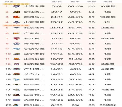 CBA最新積分榜