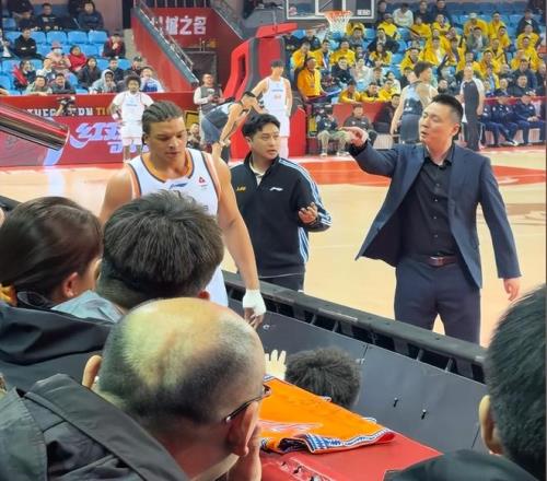 或許是不滿自己場上表現(xiàn),也或許是不滿教練將他換下,斯佩爾曼接下來做出了一個非常不禮貌、也非常出格的舉動,在路過許利民時直接伸手指向?qū)Ψ剑炖锬钅钣性~像是在質(zhì)問許指導。