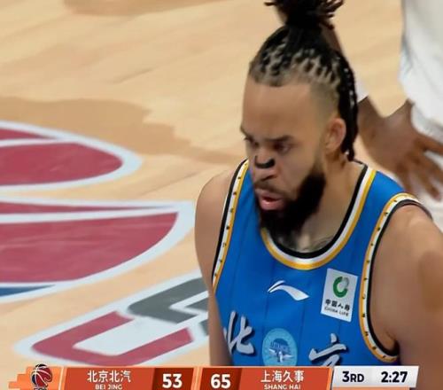 外援杰曼上半場5投0中,一分未得,成為首鋼進攻啞火的縮影。半場結(jié)束,上海52-36領先16分,比賽幾乎失去懸念。