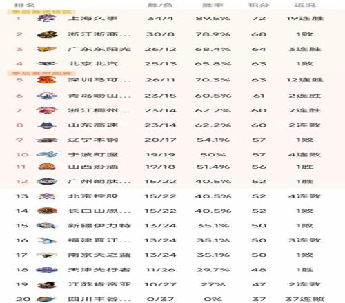 隨著上海豪取19連勝,廣東雙殺廣廈,CBA最新排名出爐!北京第4