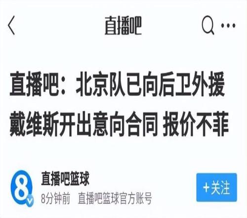 現(xiàn)在來(lái)看的話,經(jīng)過(guò)這一個(gè)多月的尋找后,北京男籃并沒(méi)有找到更加合適的小外援。而通過(guò)和上海男籃的比賽,讓球隊(duì)看到了外援方面的不足,這才重新和戴維斯團(tuán)隊(duì)進(jìn)行了接觸,并對(duì)其提供了一份意向報(bào)價(jià)。所謂意向報(bào)價(jià)合同,并非是正式合同,只是表示北京男籃對(duì)戴維斯有強(qiáng)烈的興趣,并提供一份合同讓戴維斯進(jìn)行參考。按照直播吧透露的消息,北京男籃對(duì)戴維斯的報(bào)價(jià)不菲。
