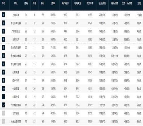 CBA積分榜最新排名出爐!廣東4連勝殺回第三,北京大勝重返第四