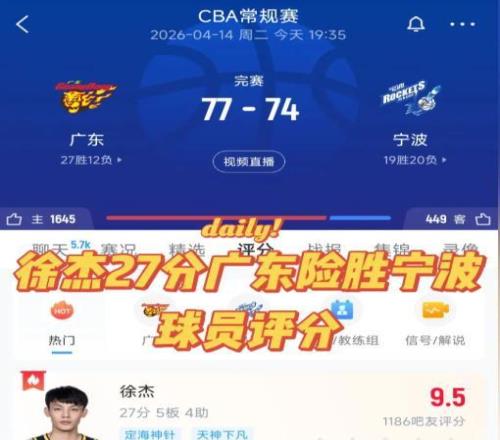 南方日報:《廣東主場77-74險勝寧波,徐杰27分率隊(duì)逆轉(zhuǎn)》2026年4月15日