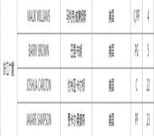廣廈在注冊(cè)新外援馬利克-威廉姆斯,他是前NBA猛龍中鋒,是一位身高2米11的中鋒球員,是2022年的NBA選秀落選,他曾經(jīng)在2023-24賽季短暫效力猛龍7場(chǎng),場(chǎng)均15.2分鐘貢獻(xiàn)2.7分5.4籃板。