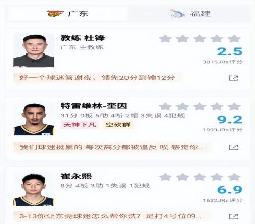 廣東男籃不敵福建,兩大劣勢明顯,球員評分:杜鋒杜潤旺2.5分!