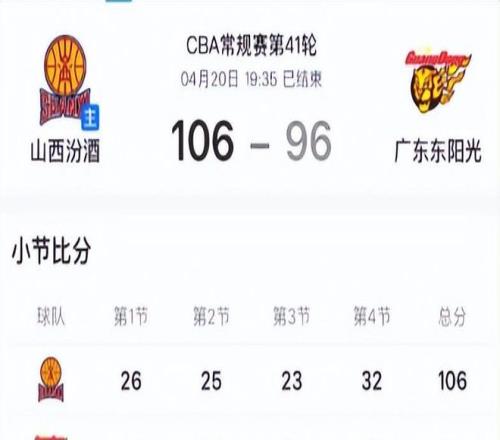 CBA常規(guī)賽第41輪這場冷門,說出來能驚掉不少球迷下巴。老牌勁旅廣東隊客場96比106輸山西,不僅吞下兩連敗,還直接無緣常規(guī)賽四強。