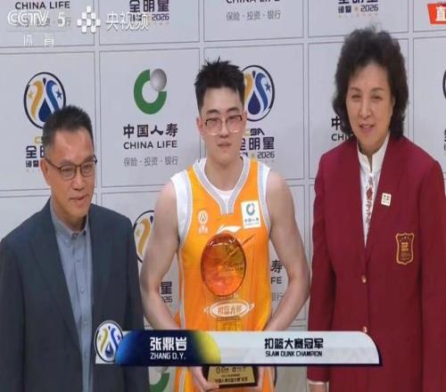 俞澤辰的動(dòng)作是助跑后半轉(zhuǎn)體背扣,雖然也是一次成功,不過視覺方面不如張鼎言飛躍徐昕那么震撼,最終獲得了45分。這樣的話,張鼎言以三次滿分扣籃的成績(jī),奪得了本屆扣籃大賽的冠軍。