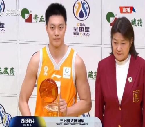三分球大賽方面,由胡明軒、曽凌鉉和于米提三人角逐冠軍。胡明軒第一個(gè)底角和中路弧頂處都是5中3,左側(cè)弧頂全中,另一個(gè)弧頂?shù)幕ㄇ蛞彩?中3,最后一個(gè)底角五球全中,超遠(yuǎn)球不中,拿到了22分。