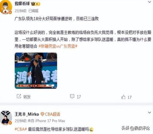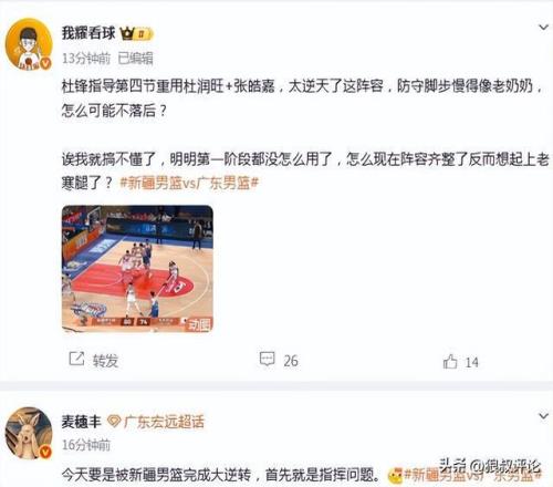 廣東遭新疆18分大逆轉(zhuǎn)引熱議!杜鋒末節(jié)爭(zhēng)議用人被吐槽家鄉(xiāng)送溫暖