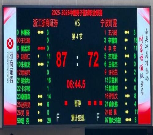 廣廈以87:72的大比分戰(zhàn)勝了寧波隊。