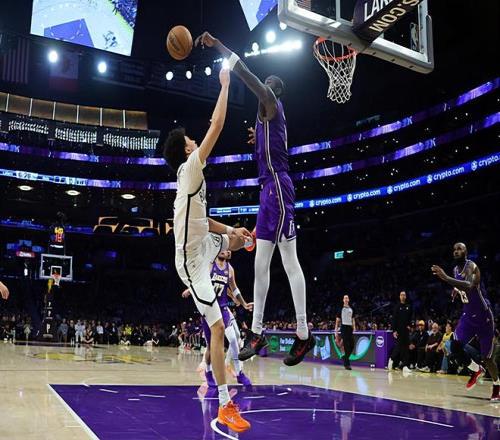 本場(chǎng)比賽中,湖人的先發(fā)中鋒德安德烈-艾頓(DeAndre Ayton)的出場(chǎng)時(shí)間并不多,但是其實(shí)整體表現(xiàn)還是不錯(cuò)的。艾頓全場(chǎng)出場(chǎng)21分56秒,投籃3中3,罰球4中3,得到了9分7籃板1搶斷3蓋帽的數(shù)據(jù),還有2次失誤和2次犯規(guī),正負(fù)值為+5。艾頓在進(jìn)攻端還是沒有辦法得到更多的出手機(jī)會(huì),但是他的進(jìn)攻效率相當(dāng)不錯(cuò),還是在對(duì)手內(nèi)線制造了一些威脅的。除此之外,艾頓在籃板保護(hù)方面的表現(xiàn)也是值得肯定的,而且他在內(nèi)線防守和護(hù)筐方面的表現(xiàn)更是算得上可圈可點(diǎn)。看起來籃網(wǎng)先發(fā)中鋒尼古拉斯-克拉克斯頓(Nicolas Claxton)在艾頓面前得到了一些分?jǐn)?shù),但是實(shí)際上這也和湖人在防守策略方面的選擇相關(guān)。艾頓不得不被換防,而其他球員又沒有足夠出色的內(nèi)線防守能力,這才是克拉克斯頓得到不少分?jǐn)?shù)的關(guān)鍵因素。