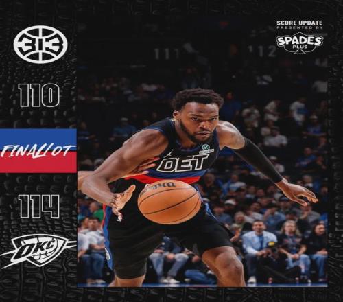 北京時(shí)間3月31日,NBA常規(guī)賽:西部第一的雷霆114-110加時(shí)擊敗東部第一的活塞??矊幇埠徒軅?杜倫兩大核心缺陣,活塞拼到了最后一刻。此役過后,雷霆60勝16負(fù)領(lǐng)先馬刺2.5個(gè)勝場(chǎng),成為本賽季第一支拿到60勝的球隊(duì)。