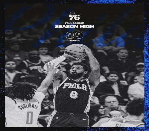 今日76人153-131大勝奇才,保羅-喬治22投15中,轟下39分5籃板6助攻3搶斷。