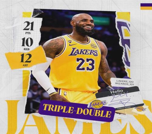 比如前兩天湖人擊敗奇才,在東契奇休戰(zhàn)的情況下,詹姆斯打出21分10籃板12助攻的史上最好三雙。