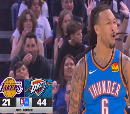 湖人與雷霆近期狀態(tài)均是相當(dāng)不俗,自然是令人對于西部前三的強(qiáng)強(qiáng)對話充滿期待。未曾想,比賽卻變成一邊倒的湖人被吊打模式,首節(jié)結(jié)束湖人已經(jīng)21-44落后23分差距。湖人核心東契奇打滿12分鐘6中1,詹姆斯也僅有1中0表現(xiàn),里夫斯2中2得到8分卻出現(xiàn)腰部不適,且被雷霆限制首節(jié)出現(xiàn)多達(dá)8次失誤。