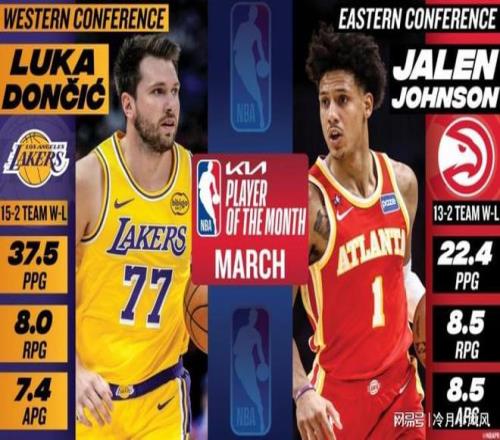 今日,NBA官方發(fā)布了3月份東西部月最佳球員名單,結(jié)果顯示東部由老鷹新王約翰遜獲得,西部則由湖人領(lǐng)袖東契奇當(dāng)選。在過去的3月份里,約翰遜出戰(zhàn)13場,場均得到22.5分8.5籃板8.5助攻,幫助老鷹取得了11勝2負(fù)的戰(zhàn)績;東契奇出戰(zhàn)16場,場均砍下37.5分8籃板7.4助攻,率領(lǐng)湖人取得了14勝2負(fù)的戰(zhàn)績。無論從個人數(shù)據(jù),還是球隊?wèi)?zhàn)績來看,兩人的當(dāng)選都是實至名歸的。