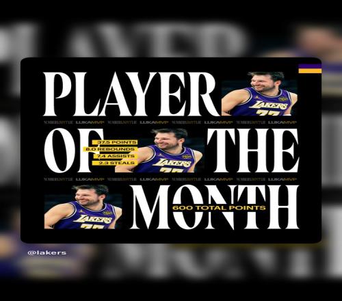體育播報4月3日宣 今日NBA官方宣布,湖人球星東契奇當選三月份西部月最佳球員。