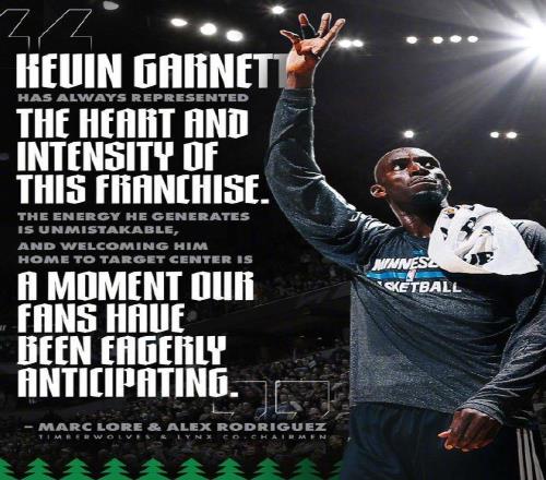 加內(nèi)特在生涯前12個賽季均效力森林狼,成長為狼王,之后在生涯末期重返森林狼,繼續(xù)效力一個半賽季后退役。