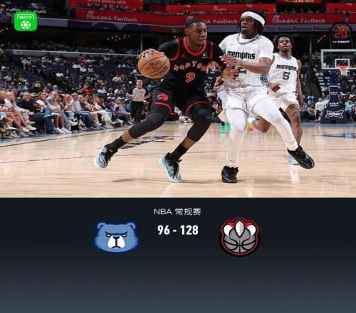 第四節(jié)灰熊GG-杰克遜拿下7分,猛龍格雷迪-迪克拿下7分,最終灰熊96-128不敵猛龍