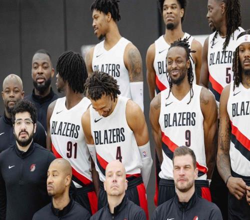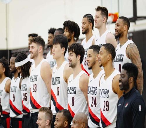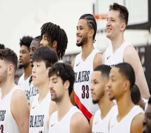 開拓者拍全家福!克林根C位楊瀚森在他身旁昔日老大利拉德站角落