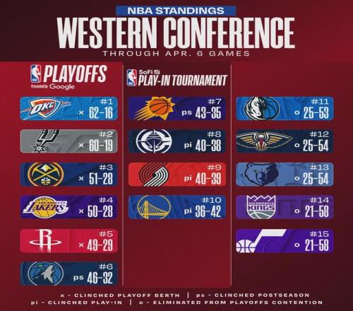 北京時(shí)間4月7日,開(kāi)拓者客場(chǎng)132-137不敵掘金。此役過(guò)后,開(kāi)拓者40勝39負(fù)西部第9,落后第8快船0.5個(gè)勝場(chǎng),領(lǐng)先第10勇士3.5個(gè)勝場(chǎng)。開(kāi)拓者還剩3場(chǎng)比賽:馬刺、快船和國(guó)王??齑€剩4場(chǎng)比賽:獨(dú)行俠、雷霆、開(kāi)拓者和勇士。
