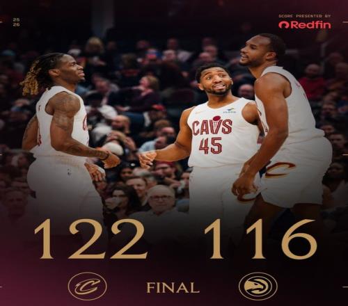 北京時(shí)間4月9日,NBA常規(guī)賽,克利夫蘭騎士隊(duì)122-116擊敗亞特蘭大老鷹隊(duì)拿到四連勝。這場(chǎng)比賽老鷹在客場(chǎng)一度領(lǐng)先11分,上半場(chǎng)打完老鷹還領(lǐng)先7分,可騎士在第三節(jié)打出44-20的攻防浪潮,末節(jié)兩隊(duì)鏖戰(zhàn)至最后一刻,多諾萬(wàn)-米切爾幫助騎士拿下勝利。