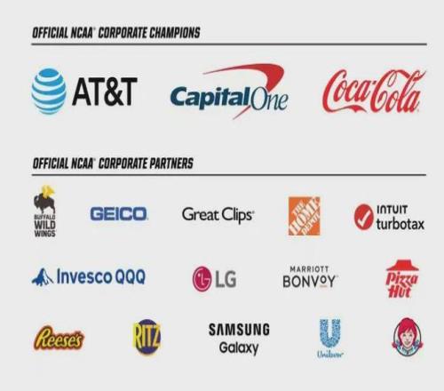 2025年,賽事媒體版權(quán)收入首次突破10億美元,Turner與CBS兩大轉(zhuǎn)播方支付的版權(quán)費(fèi)用上漲至10.2億美元。 CBS與NCAA簽訂了一份為期8年、每年價(jià)值約11億美元的轉(zhuǎn)播協(xié)議。在贊助領(lǐng)域,2025年瘋狂三月共吸引了17個(gè)品牌參與,平均年度贊助合約約為1389萬(wàn)美元,可口可樂(lè)以每年約5000萬(wàn)美元的合約領(lǐng)跑,必勝客、布法羅狂野雞翅和溫蒂漢堡三家餐飲品牌各自簽下了約1000萬(wàn)美元的贊助協(xié)議。