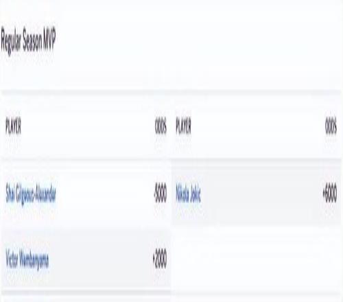 4月9日,美國媒體ESPN公布最新的常規(guī)賽MVP賠率,其中亞歷山大以-5000的賠率排名第一,文班亞馬以+2000排名第二。
