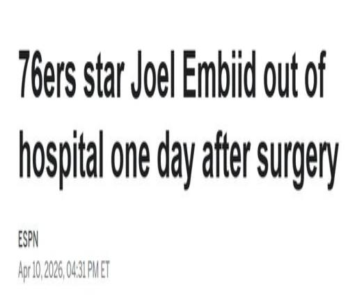 北京時(shí)間4月11日,76人球星喬爾-恩比德已從休斯頓一家醫(yī)院出院,正返回費(fèi)城。球隊(duì)今日表示,恩比德目前暫無(wú)明確復(fù)出時(shí)間表。此前報(bào)道稱,NBA相似病例平均缺陣約23天。