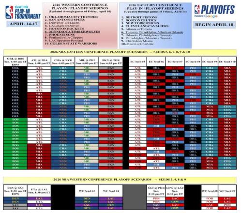 西部這邊,雷霆隊(duì)(西部第1)、馬刺隊(duì)(西部第2)、火箭隊(duì)(西部第5)、森林狼隊(duì)(西部第6)、太陽(yáng)隊(duì)(西部第7)、勇士隊(duì)(西部第10)都鎖定了各自的位置,僅剩2個(gè)懸念:掘金隊(duì)與湖人隊(duì)爭(zhēng)第3,開拓者隊(duì)與快船隊(duì)爭(zhēng)第8。尤其是對(duì)于掘金隊(duì)和湖人隊(duì)而言,第3和第4不僅僅意味著首輪對(duì)手不同,也意味著他們是否會(huì)在季后賽過早碰到衛(wèi)冕冠軍&聯(lián)盟霸主雷霆隊(duì),甚至?xí)绊憼?zhēng)整個(gè)西部季后賽的格局與進(jìn)程,正所謂:選擇大于努力,選擇不對(duì)努力白費(fèi)!