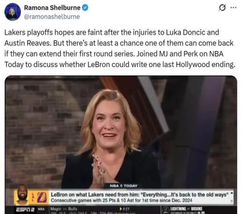 在常規(guī)賽進入最后一輪,季后賽即將開打之際,ESPN名記Ramona Shelburne在節(jié)目中談及湖人傷病時,透露了東契奇與里夫斯的最新狀況。