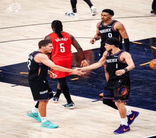 太陽隊這邊,布克低迷背鍋,17投7中得到22分4助攻2失誤;狄龍6犯離場,10投6中貢獻20分7籃板4搶斷;杰倫-格林29中14砍下35分5籃板5失誤。