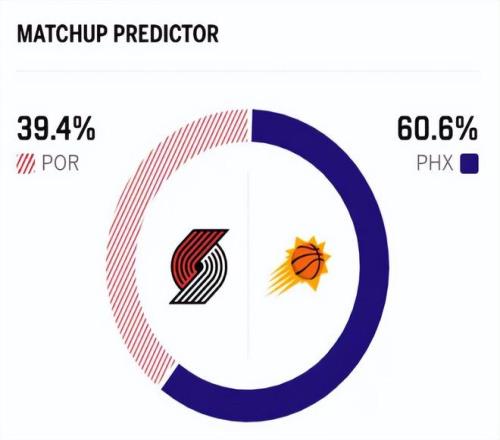 賽前,美媒ESPN對本場比賽進行了勝率預(yù)測,開拓者隊勝率僅有39.4% ,太陽勝率則高達60.6% ,差距明顯。
