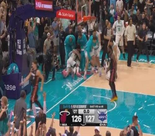 黃蜂在主場127-126淘汰熱火,將和東部第七與東部第八的敗者再打一場附加賽,爭奪8號種子季后賽席位。