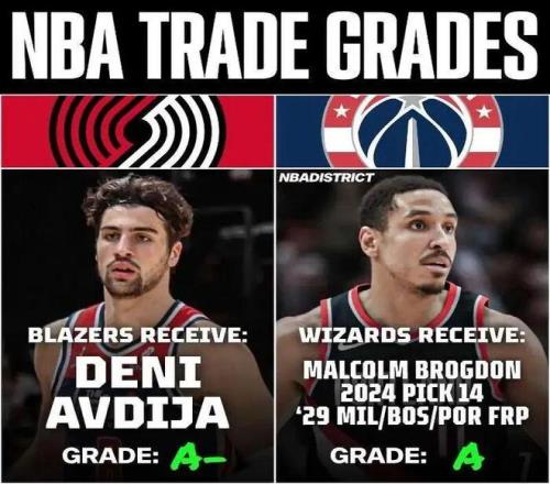 2024年夏天,開拓者送出布羅格登+首輪第14號秀卡林頓+29年首輪簽+2個次輪簽,以此從奇才挖來阿夫迪亞。