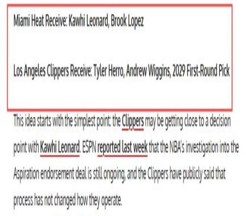 倫納德或許是熱火最現(xiàn)實(shí)的“冠軍拼圖”。快船和熱火一樣都是附加賽首場(chǎng)出局,倫納德的合同也剩余最后一年,薪資5030萬美元,快船今年夏季大概率會(huì)選擇及時(shí)止損,那倫納德?lián)Q一些重建資產(chǎn)。FW給出的交易方案對(duì)雙方都極具吸引力:熱火送出泰勒·希羅、安德魯·威金斯以及2029年首輪選秀權(quán),從快船換來小卡和大洛。這是一筆“3換2”的重磅交易,也是熱火最有可能實(shí)現(xiàn)的“即插即用”升級(jí)。