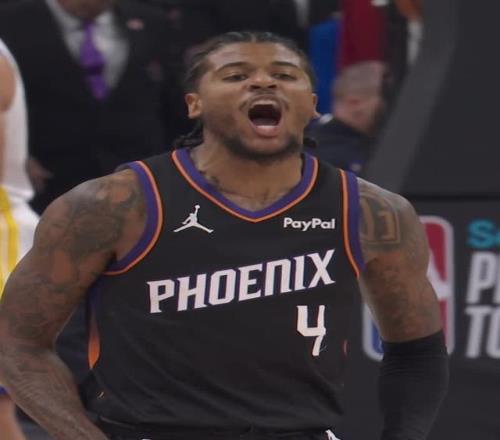 再看看太陽隊(duì)這邊,喬丹·古德溫不僅拿下了19分和9個(gè)籃板,還在很長一段時(shí)間里承擔(dān)起了死磕庫里的防守重任,絕對是贏球的大功臣。德文·布克也是穩(wěn)如磐石,雖然運(yùn)動(dòng)戰(zhàn)12投僅5中,但他在罰球線上10罰全中,最終交出了20分、8次助攻和6個(gè)籃板的“準(zhǔn)兩雙”成績單。