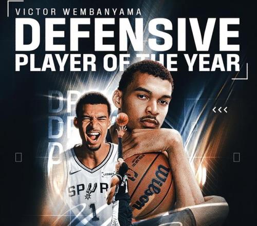 NBA季后賽精彩紛呈,常規(guī)賽各大獎(jiǎng)項(xiàng)評(píng)選正如火如荼地進(jìn)行中,聯(lián)盟官方率先揭曉了第一個(gè)獎(jiǎng)項(xiàng),也是最沒(méi)有懸念的一個(gè):年度最佳防守球員!來(lái)自NBA官方的消息,馬刺隊(duì)中鋒文班亞馬當(dāng)選本賽季常規(guī)賽DPOY!隨后,美媒更新的得票情況顯示:文班亞馬拿到了所有的100張第一選票,總得分為500分,比另外兩位DPOY候選人加起來(lái)還高——切特拿到76張第二選票和11張第三選票,總得分為239分;奧薩爾湯普森拿到9張第二選票和33張第三選票,總得分僅為60分!