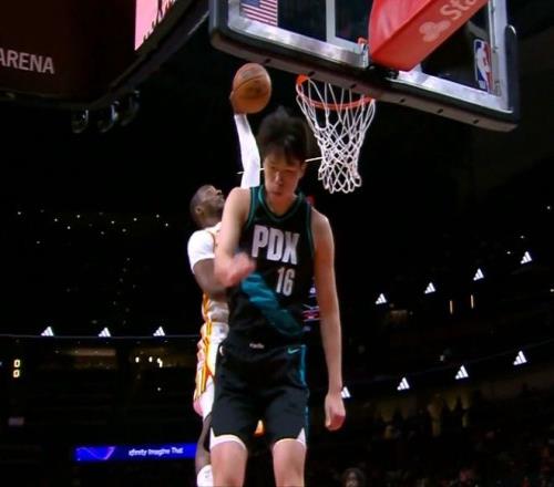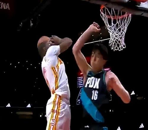 防守腳步緩慢,積極性也不夠,最關鍵的是,還缺乏一股狠勁。另外一個防守回合,老鷹打快攻,幾次傳導球后,球來到外線文森特手里,文森特一個投籃假動作,點飛了克雷伊奇,然后低手把球喂到了三秒?yún)^(qū)附近的庫明加手里。庫明加接球后,看到防守他的是楊瀚森,毫不猶豫,直接起飛,迎著小楊就是一個左手重扣,勢大力沉,非常炸裂!這球小楊也起跳了,但是最后一刻,沒有去干擾,似乎害怕了,躲開了,被庫明加完成了隔扣。
