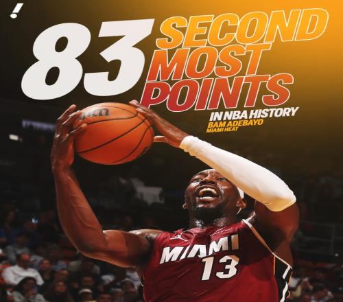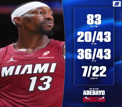 北京時間3月11日,巴姆-阿德巴約拿到了單場83分的炸裂數據,此役他瘋狂出手43次命中20球,三分球22中7,罰球43中36,命中率46.5%,三分命中率31.8%,罰球命中率83.7%。