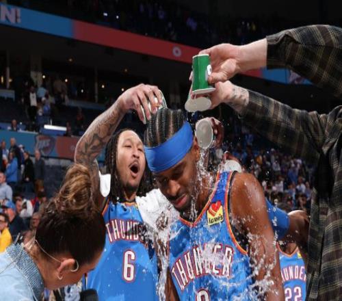 比賽結(jié)束,亞歷山大被現(xiàn)場記者拉到場邊采訪,隊友們紛紛往亞歷山大頭上澆水,一杯又一杯。亞歷山大做出了一副生無可戀的模樣,隨后調(diào)侃道:“別擔(dān)心,他們會承擔(dān)后果的?!碑?dāng)然,這只是玩笑話,這是NBA傳統(tǒng)的慶祝球員取得里程碑時刻的方式,不會影響隊友之間的關(guān)系。