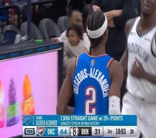 最后,亞歷山大強忍著極大的不適,繼續(xù)打了2分鐘,20分鐘砍20分,艱難延續(xù)了130場得分20+的歷史紀錄。