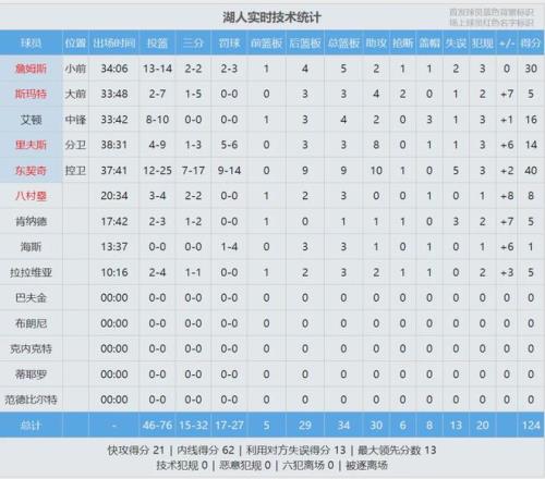 東契奇先是助飛詹姆斯,緊接著大心臟三分飆進(jìn)。最后1分鐘,湖人領(lǐng)先到9分,火箭大勢(shì)已去。全場(chǎng)結(jié)束,湖人124-116擊敗火箭,湖人豪取7連勝。東契奇25投12中砍下40分9板10助、詹姆斯14投13中高效率砍下30分5板2助。