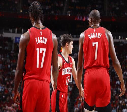 在申京扮演第一進(jìn)攻發(fā)起點(diǎn),同時(shí)身旁有謝潑德、霍勒迪與奧科吉控球的情況下,杜蘭特終于不用再長(zhǎng)時(shí)間控運(yùn),更多扮演無球終結(jié)點(diǎn)角色。