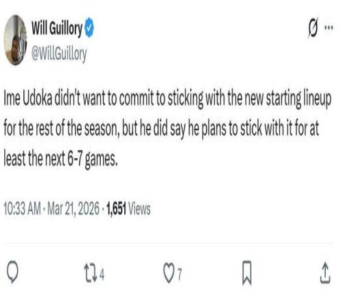 面對(duì)肉眼可見的提升,一向十分固執(zhí)的烏度卡也在賽后公開承諾,將在未來5-8場(chǎng)比賽延續(xù)這套首發(fā)看看效果。