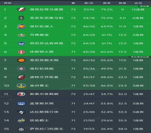 隨著雷霆12連勝,湖人失絕平三分,西部最新排名出爐!馬刺排第2