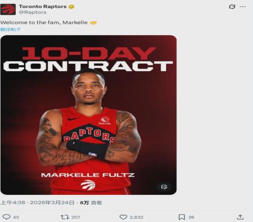 北京時(shí)間3月24日,多倫多猛龍官方宣布:球隊(duì)用一份10天合同,正式簽下NBA狀元馬克爾-富爾茨。富爾茨兩周前加入發(fā)展聯(lián)盟,如今終于重返NBA。他在發(fā)展聯(lián)盟場均9.8分2.5板5.3助,三項(xiàng)命中率:43.9%,16.7%,80%。